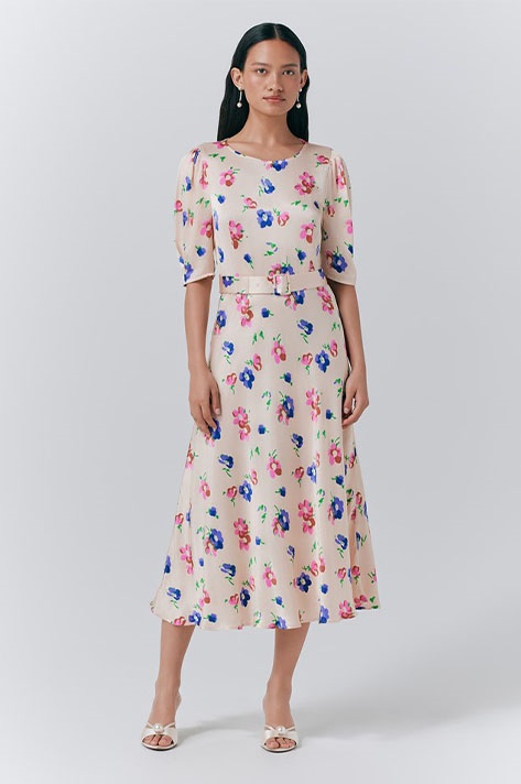 Lenora Floral Belted Midi Dress