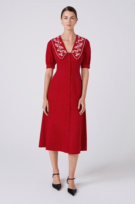 Sloane Embroidered Corduroy Midi Dress