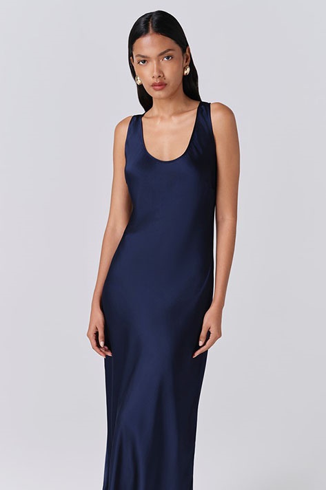 • Victoria Satin Midi Dress